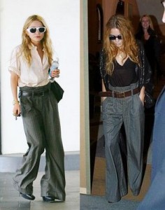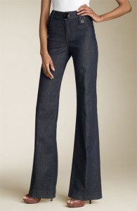 A popular trend seen in the streets are high waist wide leg jeans and pant styles. Wide leg silhouettes are showing up on all the starlets this season; Eva Mendes, the Olsen twins, Kim Kardashian and others. The silhouette can be very flattering, if done properly. They pay homage to a powerful movement in American history.
