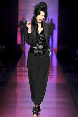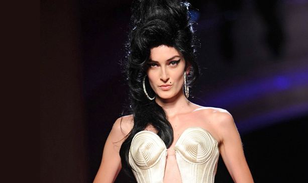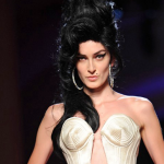 The talented artist, Amy Winehouse, died last year of alcohol poisoning. She was credited as being the inspiration for the Chanel cruise collection held in London, but Gaultier’s collection caught more of her visual persona. Winehouse was famous for mixing motifs and eras, for her juxtaposition of unusual fabrics, all captured during the show.