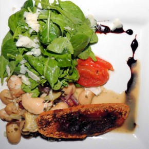 From the “Soup & Salad” section, we enjoyed the White Bean & Arugula Salad with rosemary, pancetta, shaved pecorino, roasted fennel, red onion, tomato and lemon oil with a balsamic reduction and bacon toast ($11); as well as Vintana’s Soup Trio ($9)—single serving cup portions of each the rich and creamy lobster bisque, the velvety and addicting tomato sage bisque, and the soup du jour—that day a hearty and perfectly seasoned chicken and rice.